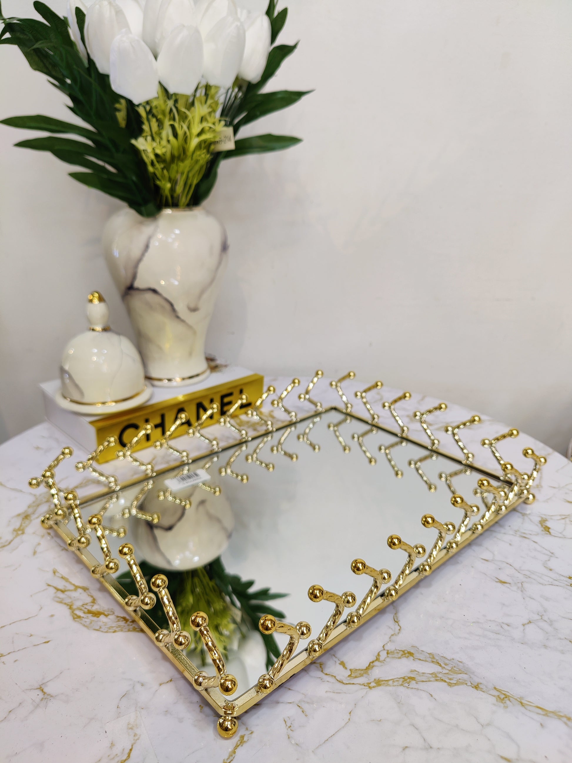 Plateau rectangulaire doré inoxydable