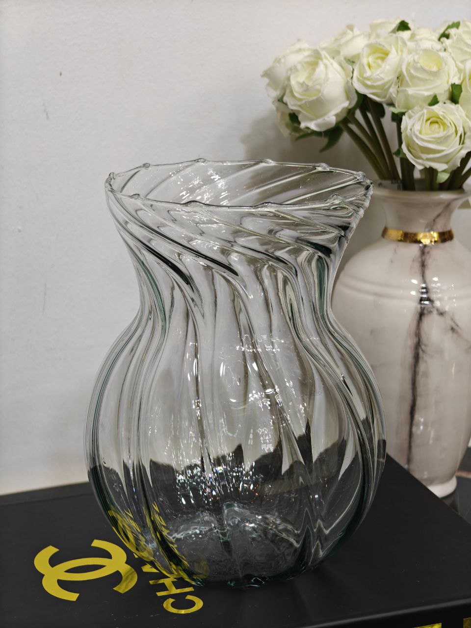 Vase en verre transparent